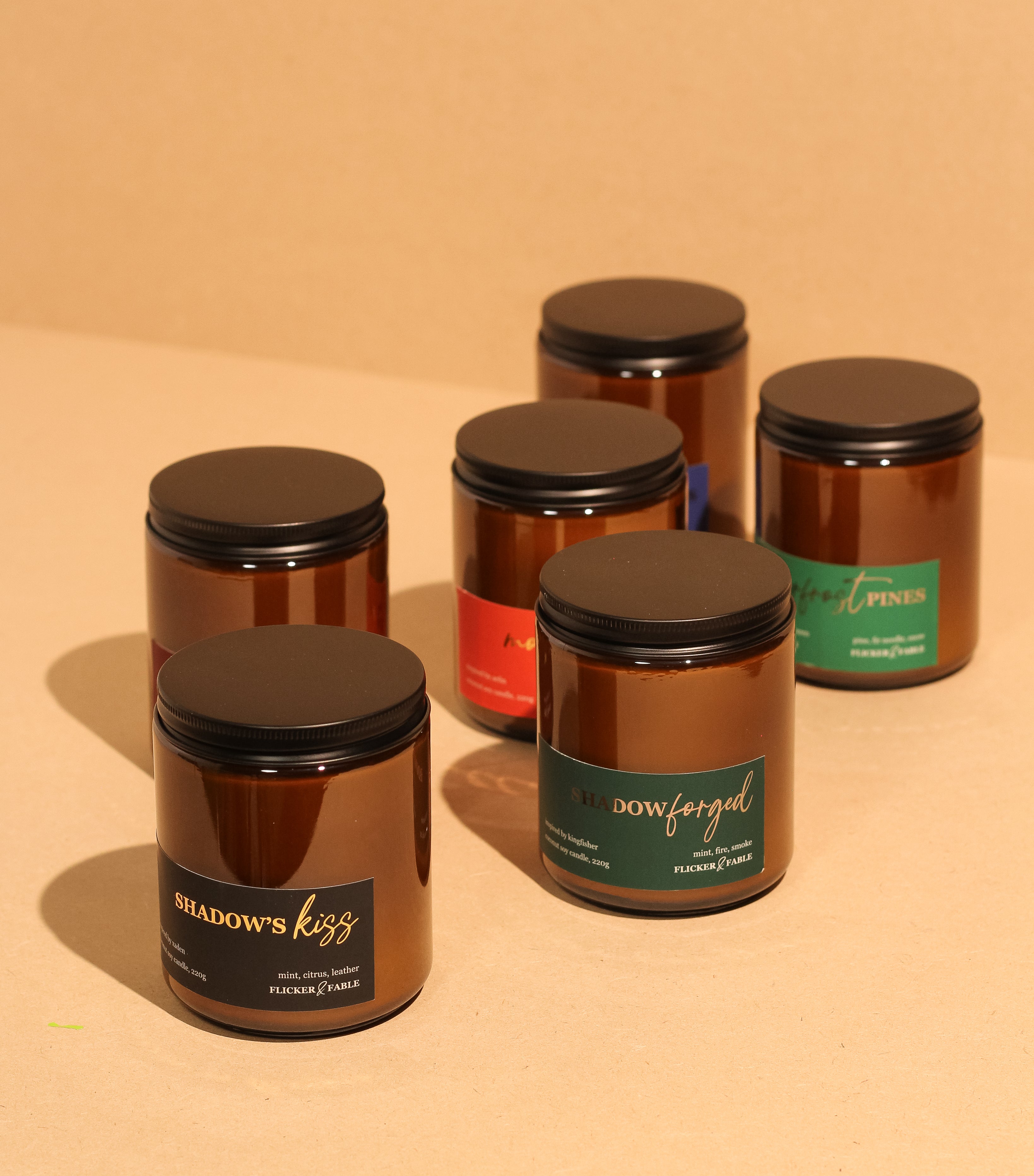 Flicker & Fable was created to combine two activities I enjoy, reading and candle making. I create hand-poured candles inspired by my favourite books, and each scent is carefully crafted to transport you into a moment or a meeting with your favourite character all over again.